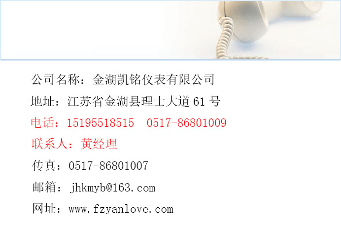 金湖凱銘儀表有限公司是一家生產(chǎn)儀器儀表廠家。本公司將以優(yōu)質(zhì)的產(chǎn)品、優(yōu)惠的價(jià)格、歡迎新老客戶誠信合作。聯(lián)系電話:15195518515 黃經(jīng)理