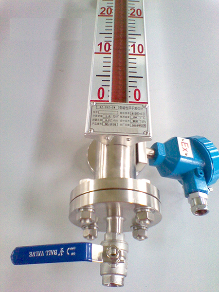 3、磁翻板液位計(jì)安裝必須垂直,磁翻板液位計(jì)與容器引管間應(yīng)裝有球閥,便于檢修和清洗;