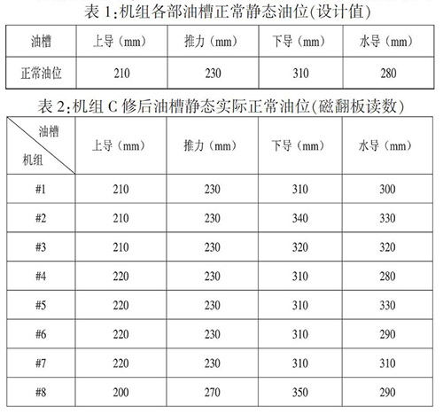 2)機(jī)組檢修后嚴(yán)格按照設(shè)計(jì)圖紙要求油位進(jìn)行加油,偏差控制在±10mm以內(nèi);