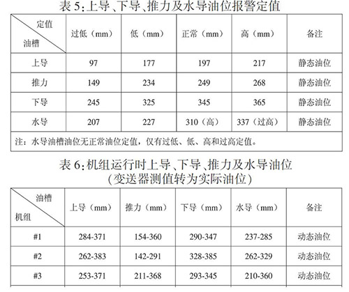 根據(jù)以上分析,可以得出機(jī)組各部油槽正常靜態(tài)油位如表1: