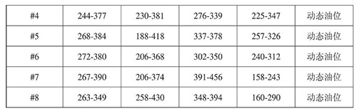 通過表7,按照*大波幅=動(dòng)態(tài)*大值-靜態(tài)*小值、*小波幅=動(dòng)態(tài)*小值-靜態(tài)*大值可以得出油位*大波幅和*小波幅,詳見表8: