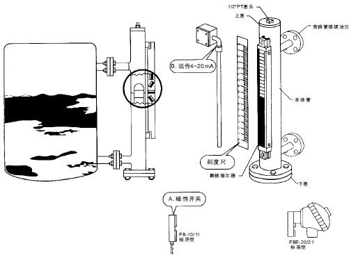 七、液位計(jì)運(yùn)用時(shí)特別要留意,千萬不要用強(qiáng)磁鐵在連通管外上下拉動浮子停止檢查,否則會招致磁性浮子磁化而改動*性,以至?xí)垢∽哟判韵魅?,致使難以正常工作。