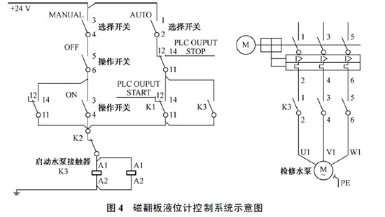 在檢修排水系統(tǒng)中, 采用石灰液位計(jì)來代替壓力變送器, 在實(shí)際水位的觀察上直觀清晰, 由于指示部分與被測(cè)介質(zhì)完全隔離, 其機(jī)構(gòu)密封結(jié)合面少,不易滲漏, 運(yùn)行安全可靠, 該裝置易于安裝、維修也方便, 工作時(shí)不受環(huán)境溫、濕度的影響。利用液位計(jì)管壁外側(cè)的磁記憶開關(guān), 做到自動(dòng)控制檢修水泵啟停功能后, 增加了檢修水泵設(shè)備的運(yùn)行安全性和可靠性, 同時(shí)對(duì)運(yùn)行人員能夠準(zhǔn)確地判斷尾水管水位,提供了依據(jù)。通過此次的技改, 使我們認(rèn)識(shí)到面對(duì)缺陷要利用科學(xué)的方法去分析, 用合理的辦法去解決, 確保電站設(shè)備的安全可靠運(yùn)行。