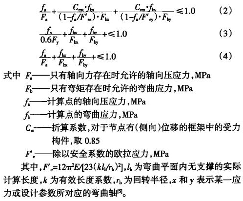 (2)UC值是美國ANSI/AISC《鋼結(jié)構(gòu)設(shè)計(jì)手冊(cè)》針對(duì)鋼結(jié)構(gòu)物體承受壓縮彎曲等多種組合載荷聯(lián)合作用時(shí)所采用的綜合機(jī)械強(qiáng)度性能的度量指標(biāo)。