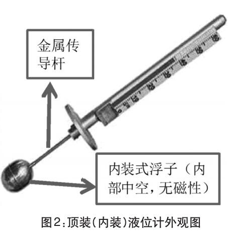 該區(qū)塊集氣站使用的是地埋污水罐,主要作用是對集氣站內(nèi)生產(chǎn)污水進(jìn)行沉降。在運(yùn)行過程中,冷凝水液位計故障導(dǎo)致顯示數(shù)據(jù)不準(zhǔn),一方面對污水液位情況掌握不準(zhǔn)確,另一方面會出現(xiàn)不安全因素,甚至安全事故。該井區(qū)地埋污水罐使用的液位計為頂裝式磁翻板(磁浮子)液位計,根據(jù)液位計磁性材質(zhì)所在位置的不同冷凝水液位計也稱為內(nèi)裝式磁翻板液位計。