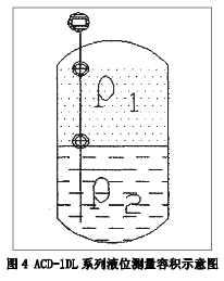 磁致伸縮式液位計(jì)出廠是根據(jù)用戶提供的“上密度”和“下密度”確定浮子的重量。在測量界面時,實(shí)際上是浮子浮在界面上,所受的浮力和重力相等。公式為:W=F=Vlpl+(V-Vl)p2 W—浮子重量;F—浮子受到的浮力;V1—浸入下液體的體積;V—浮子體積。