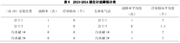 如上表6:ACD-1DL系列液位計(jì)故障率較低,平均值約1次,同比磁浮子液位計(jì)故障率平均值4次,浮球損耗ACD-1DL系列液位計(jì)為0個,同比磁浮子液位計(jì)浮球損耗約2個。ACD-1DL系列液位計(jì)故障率大大降低,減輕了員工勞動強(qiáng)度。