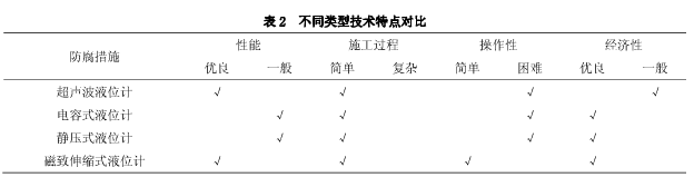 對以上幾種液位計(jì),從性能、施工情況、操作性以及經(jīng)濟(jì)性等方面進(jìn)行技術(shù)比較,見表2: