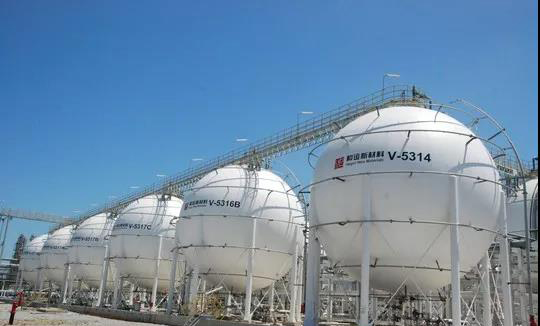 球罐,抗壓性好,與圓筒容器(即一般立式貯罐)相比,在直徑和壓力相同的情況下,罐壁厚度僅為圓筒容器的一半,鋼材用量?。涣砍檀?,且占地較小,基礎工程簡單,性價比高,為*常用儲罐之一。