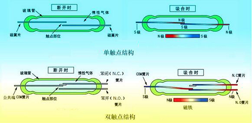 *三:根據(jù)現(xiàn)場使用的電壓來選擇合適的干簧管:如通過報警開關的電壓不大,那就可以選擇低壓干簧管,反之亦然。再比如您需要的只是一個閉點信號,則選擇常開型干簧管,反之則用常閉型。