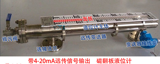 防凍液液位計主體外的翻板箱受主體內(nèi)浮子(具有定向磁性源,按不同介質(zhì)和壓力針對研制)的作用促其翻板翻動并顯示紅白顏色,并隨浮子的移動指示不同的液面高度。在指示器左側(cè)配有醒目的刻度標(biāo)尺,從而使液位的指示顯得更加清晰。那么,防凍液液位計帶遠(yuǎn)傳又是如果實現(xiàn)信號遠(yuǎn)傳輸出的呢?