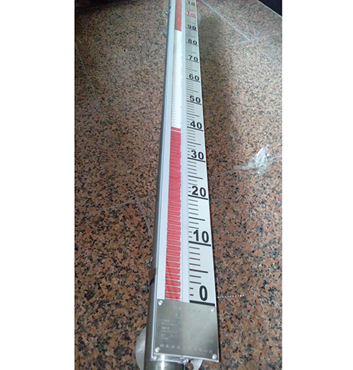 3、磁翻板液位計(jì)安裝完畢后,需要用磁鋼進(jìn)行校正對(duì)翻柱導(dǎo)引一次使零位以下顯示紅色,零位以上顯示白色。