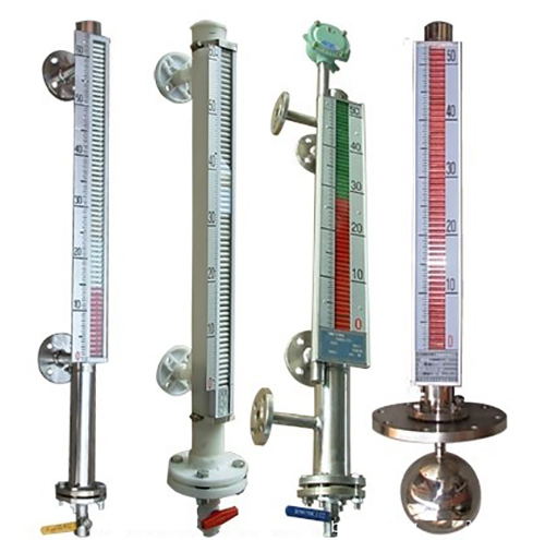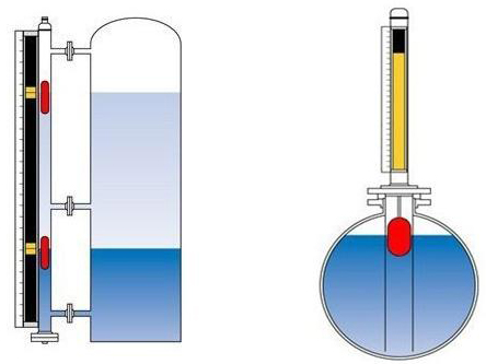 液位計根據(jù)浮力原理,浮子在測量管內隨液位的升降而上下移動,浮子內的永久磁鋼通過磁耦合作用,驅動紅、白色翻柱翻轉180’液位上升時,翻柱由白色轉為紅色,下降時,翻柱由紅色轉為白色,從而實現(xiàn)液位的指示。