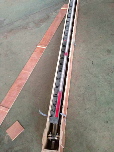 根據(jù)浮力原理,浮子在測(cè)量管內(nèi)隨液位的升降而上、下移動(dòng),浮子內(nèi)的永久磁鋼通過(guò)耦合作用,驅(qū)動(dòng)紅、白色翻柱翻轉(zhuǎn)180°,液位上升時(shí)翻柱由白色轉(zhuǎn)為紅色,下降時(shí)由紅色轉(zhuǎn)為白色,從而實(shí)現(xiàn)液位指示。